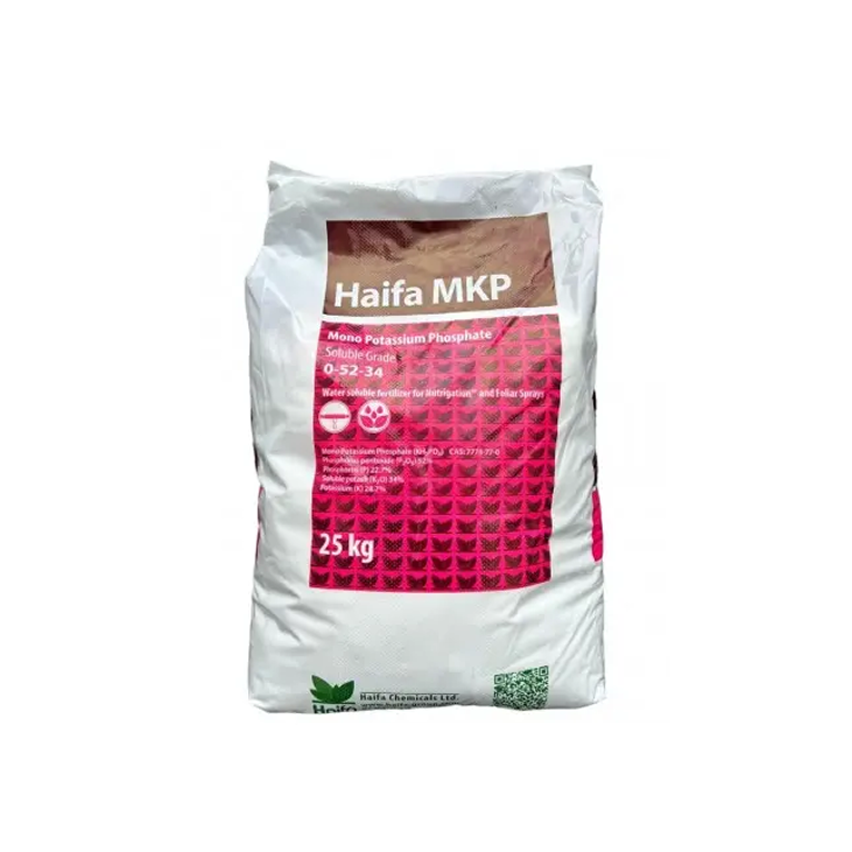 Добриво Монокалій фосфат Хайфа / Haifa МКР 0-52-34 25 кг Haifa Ізраїль Характеристики: Виробник: Haifa Країна виробник : Ізраїль. Метод обробки : Листове підживлення Тип добрива : Водорозчинні добрива Основний елемент: Фосфор Форма добрива : Гранули Призначення : Для с/г культур Назва: Монофосфат калію Склад: Р2О5 = 52%; Р = 22,7%; Призначення: Добриво MKP 0-52-34 – це монокалійфосфат, його застосовують для позакореневого підживлення та фертигації…